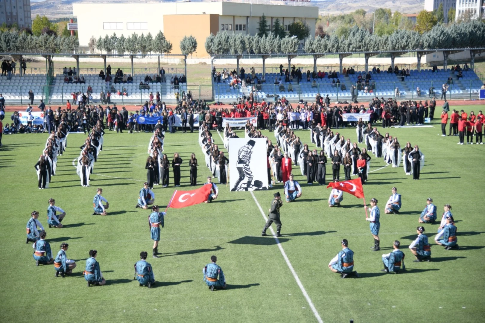 Tribünleri hınca hınç dolduran vatandaşlar, Şehit Ali Anar Anadolu Lisesi’nin hazırlamış olduğu kutlama programını alkış tufanı ile birlikte izledi. Cumhuriyet ruhunun birlik ve beraberlik içerisinde yeniden ateşlendiği kutlamaya, ‘’Biz Birlikte Al Bayrağız’’ konulu bayrak gösterisi damga vurdu.